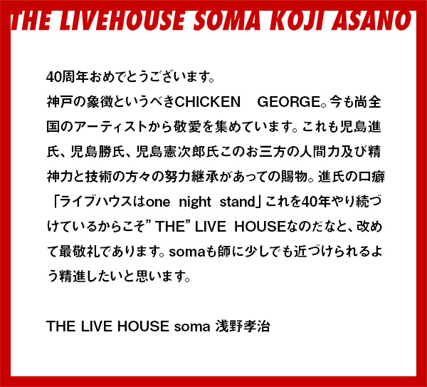 THE LIVE HOUSE soma 浅野孝治 Message >